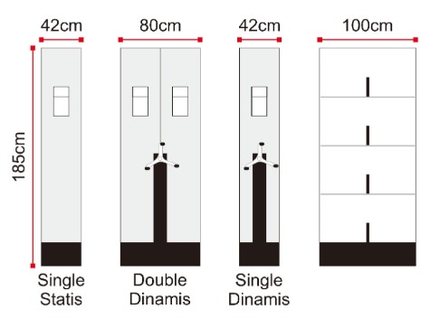 H 185 x W 100 x D 42 cm